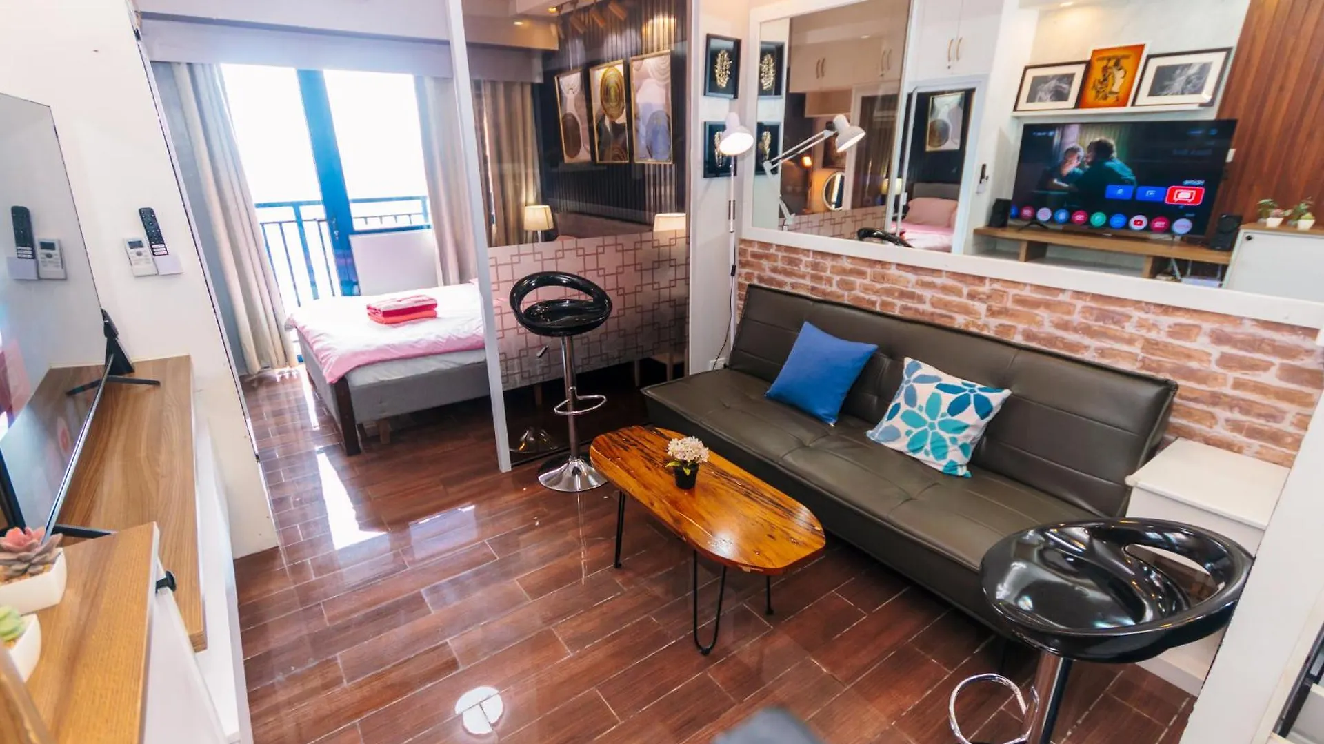 Een complete keuken met een magnetron, koffie- en theefaciliteiten, een koelkast behoren tot de voorzieningen voor self-catering. Gasten zullen van de gerechten van Aziatische keuken genieten, die worden geserveerd in Heaven's Barbeque, gelegen op wandelafstand van 5 minuten ervandaan. Het dichtstbijzijnde vliegveld is Ninoy Aquino International, 10 km van het 1-slaapkamer appartement in Manilla. U kunt gebruikmaken van een wellnesscentrum, dus het is gemakkelijk om uw trainingsroutine vol te houden. De accommodatie heeft een terras met uitzicht op de stad.